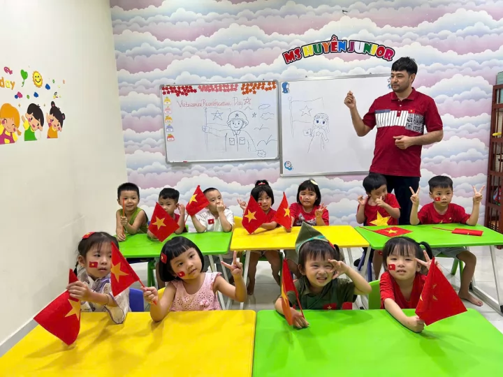 Trung tâm có cả giáo viên Việt Nam và giáo viên nước ngoài. Giáo viên Việt Nam hỗ trợ nền tảng, còn giáo viên nước ngoài giúp bé luyện phát âm tự nhiên.